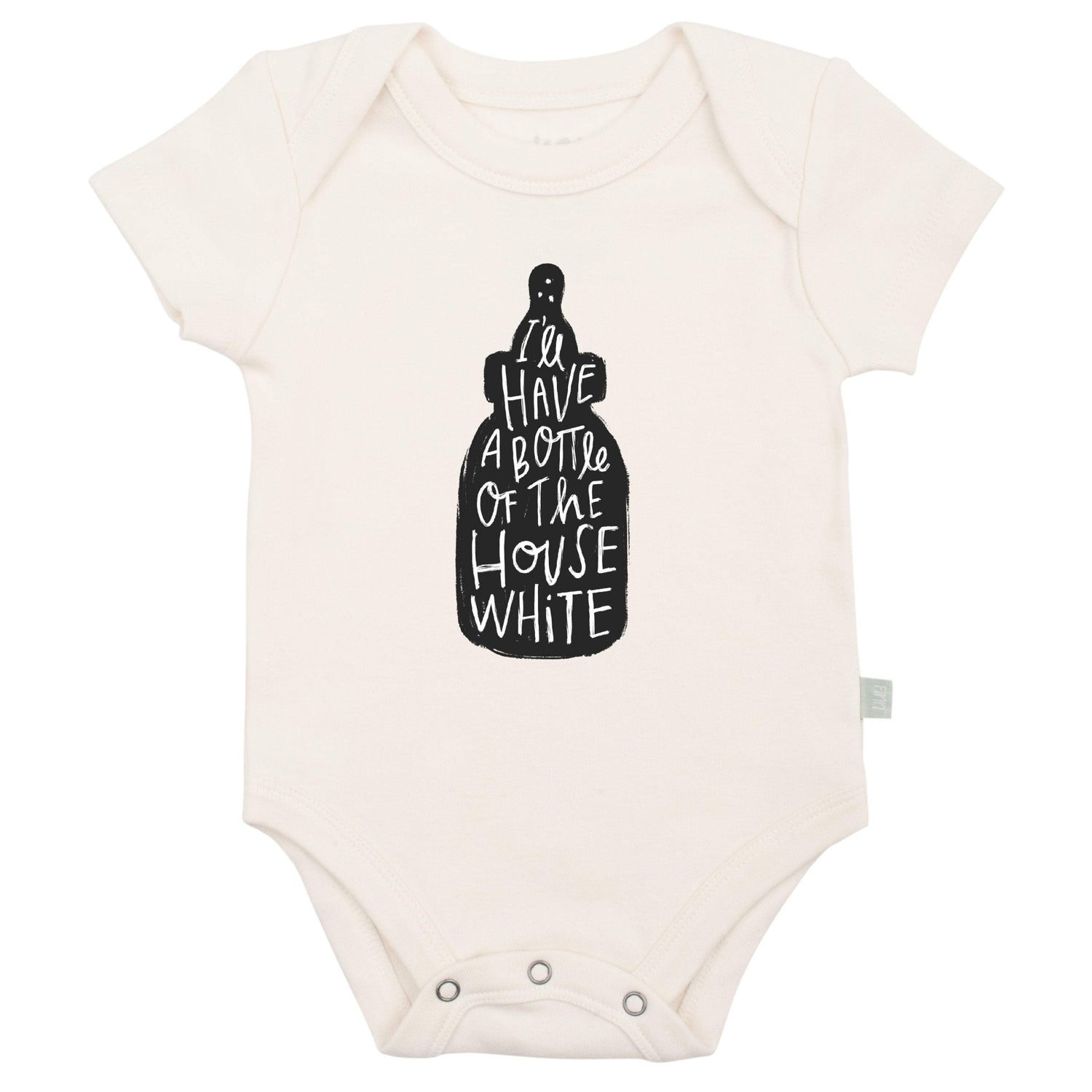 "I'll have a bottle of the house white" - We can all relate. Simple and comfortable is best, especially for babies. Our adorable bodysuit is perfect for all sizes and activity levels, from your little one's first day in the world to their first birthday celebration. Made from buttery-soft organic cotton, it features easy-snap fasteners for quick access when changing or bathing.