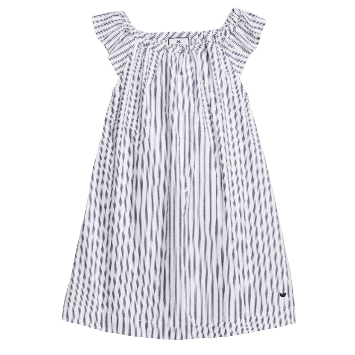 Girl's Twill Isabelle Nightgown in Navy French Ticking - HoneyBug