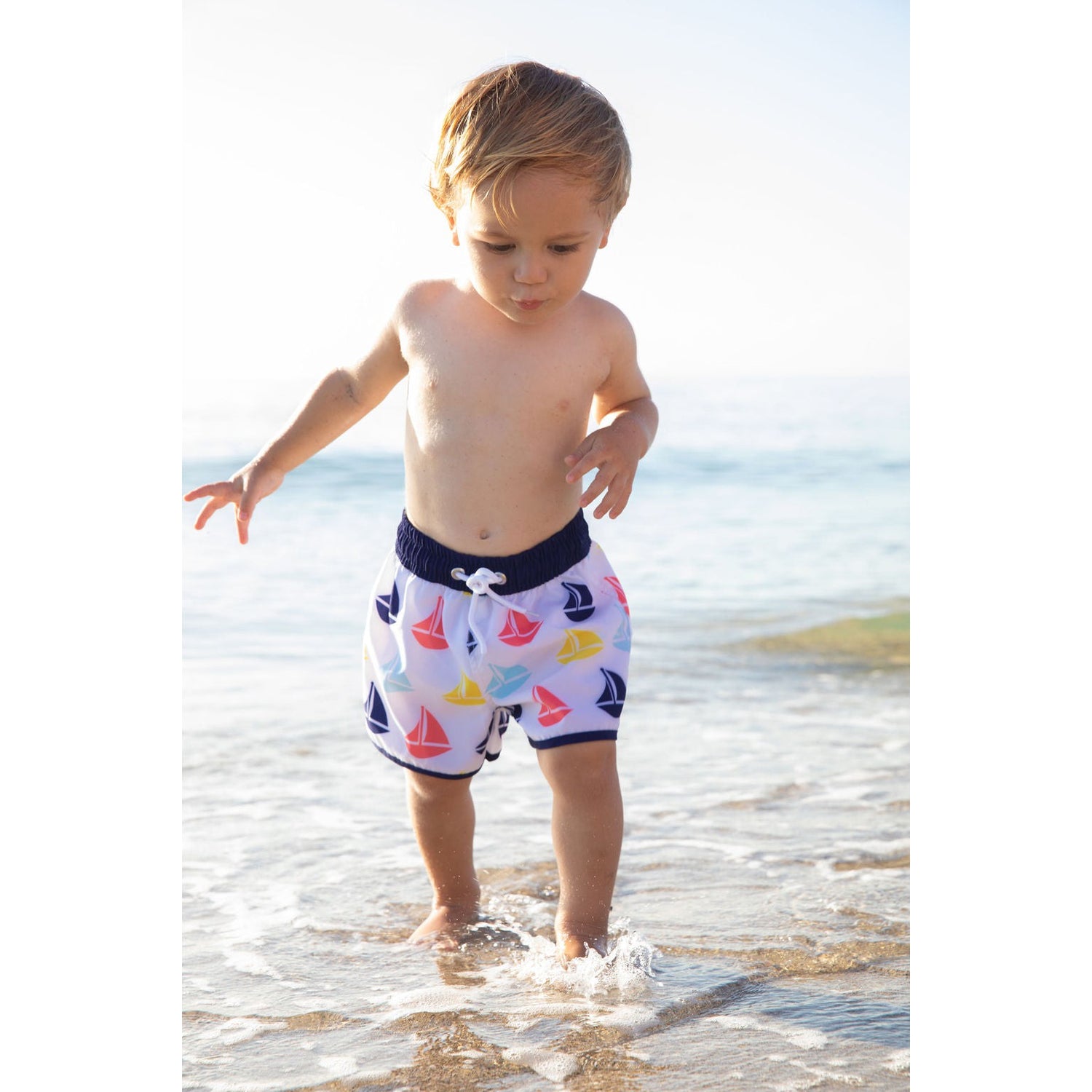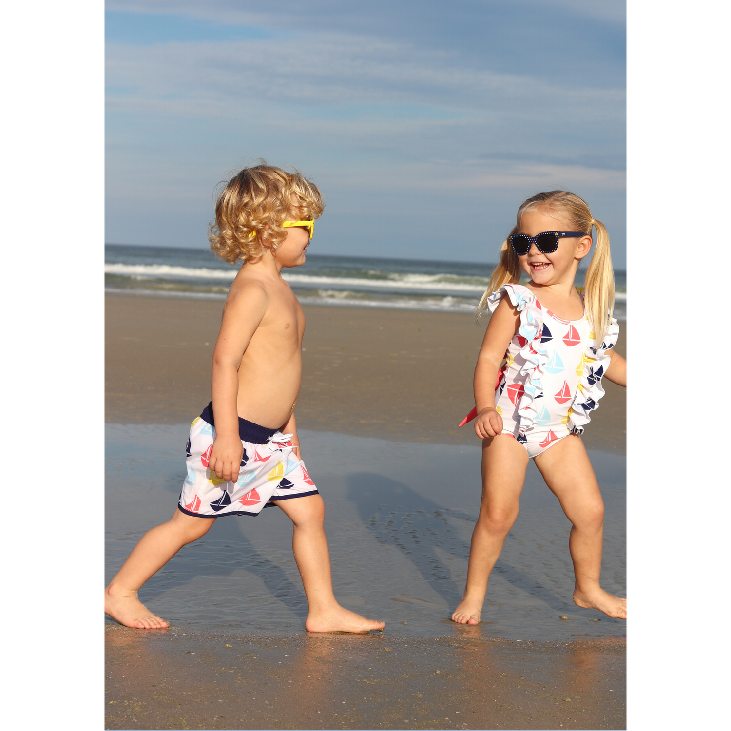 Style: Our classic swim trunks were designed with his comfort in mind. This style features an elastic waistline and includes a contrast drawstring to ensure the perfect fit.