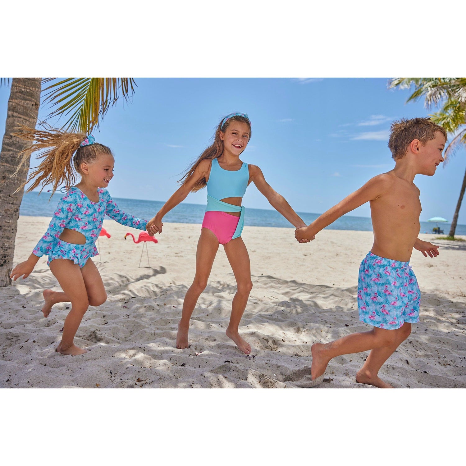 Fabric: This design is made with our premium buttery soft UPF/SPF 50+ swim fabric which is composed of a blend of polyester and elastane giving this style durability, comfort and quick drying capabilities.  We love this fabric for its anti-pilling & chlorine-resistant properties!