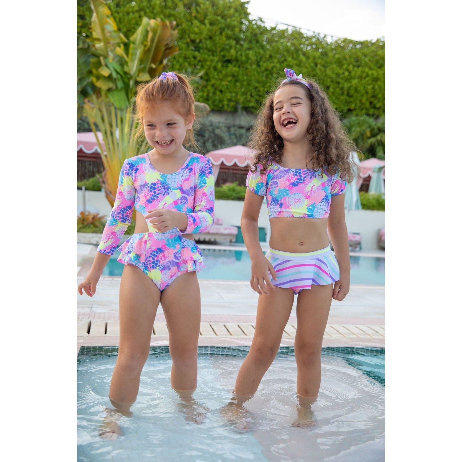 Fabric: This design is made with our premium buttery soft UPF/SPF 50+ swim fabric which is composed of a blend of polyester and elastane giving this style durability, comfort and quick drying capabilities.  We love this fabric for its anti-pilling & chlorine-resistant properties!