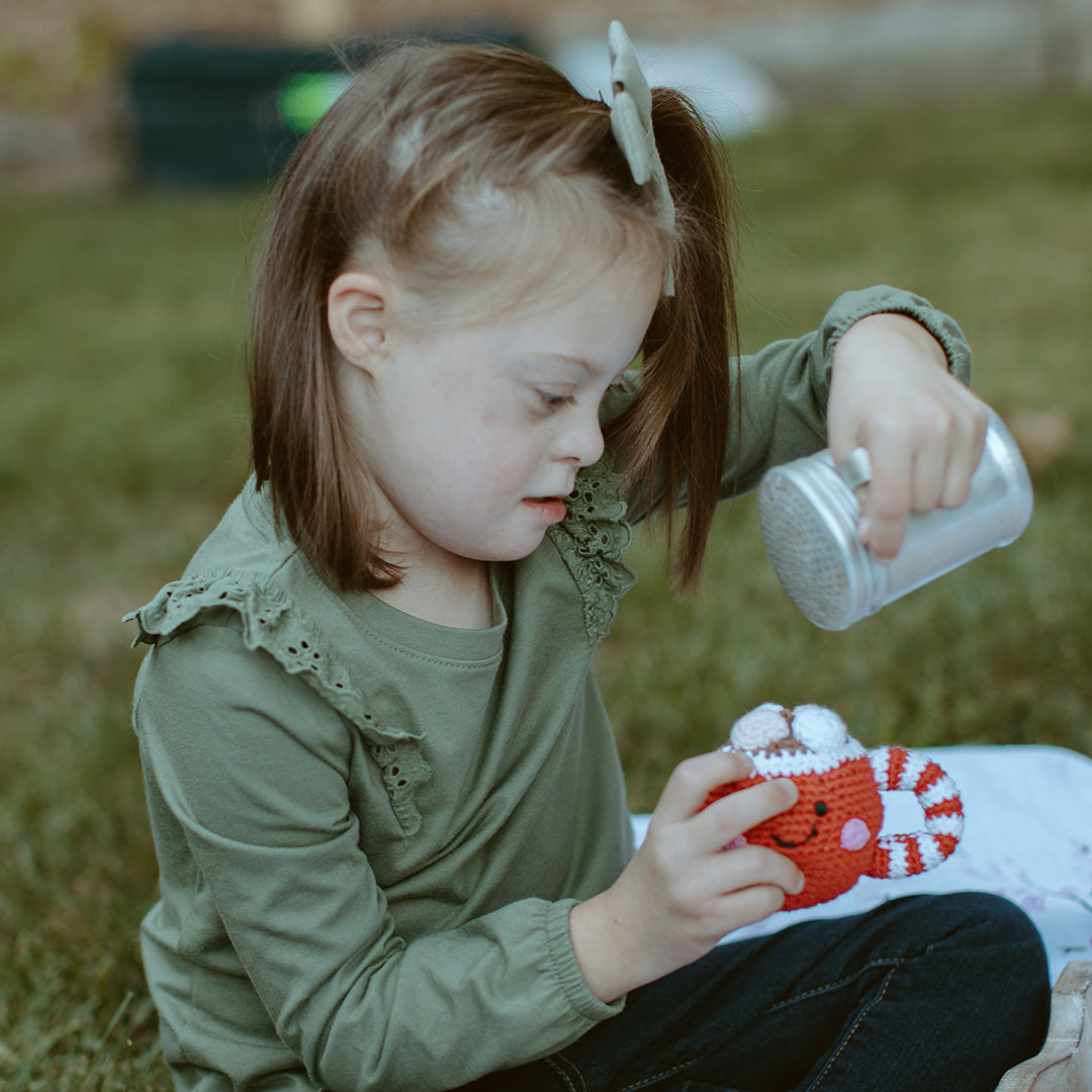 Here's a bright red cup of cheer, complete with soft marshmallow-like toppers and a warm smile. This hot cocoa toy is perfect to warm little hearts on the cold days. Handmade with the softest of cotton yarns, this bright cheery rattle makes a soft sound when shaken.