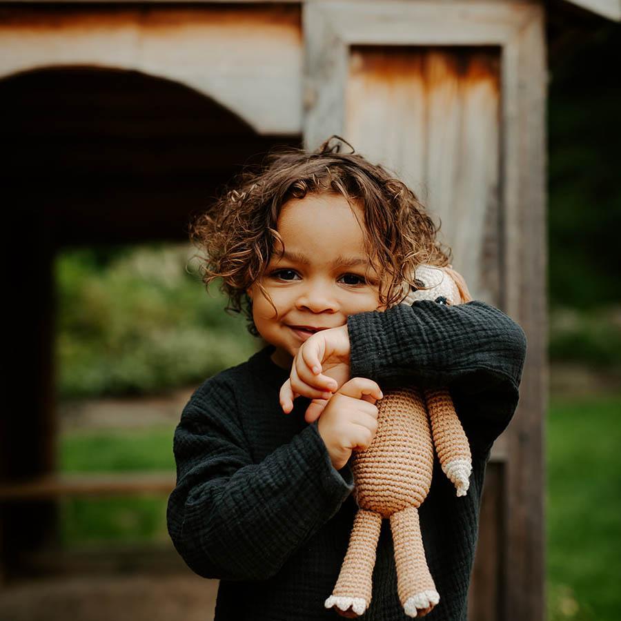 Our plush sloth might move slowly but now that he's here, he's here to stay! Lovingly handmade with soft cotton yarn, this adorable stuffed animal is ready to cuddle and comfort. Perfect for hours of imaginative play. This baby toy pairs well with our other Jungle animals, like monkey, tiger and snake.