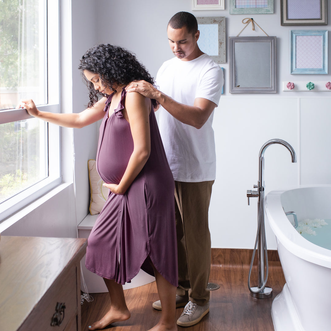 A labor and delivery gown that looks as good as it feels -- perfect for those first photos with your new little love! With openings that extend the full length of both the front and the back, the ultra-feminine Ruffle Strap Labor & Delivery Gown pairs the functionality recommended by health care professionals with the comfort of a super-soft and stretchy T-shirt. With simple snaps, the front opens completely for fetal monitoring, ultrasounds, C-section incision inspections, and skin-to-skin contact, while the Velcro in the back allows for easy epidural access. The snaps at the adorable ruffle straps mean it can be used as a nursing nightgown, and the large pockets are perfect for your phone and other essentials.