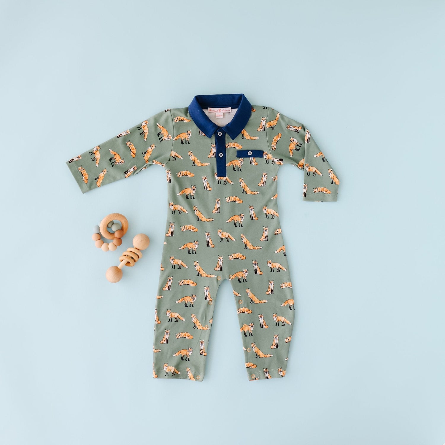 Green Fox Collared Romper - 3-6mo is backordered and will ship as soon as it is back in stock.