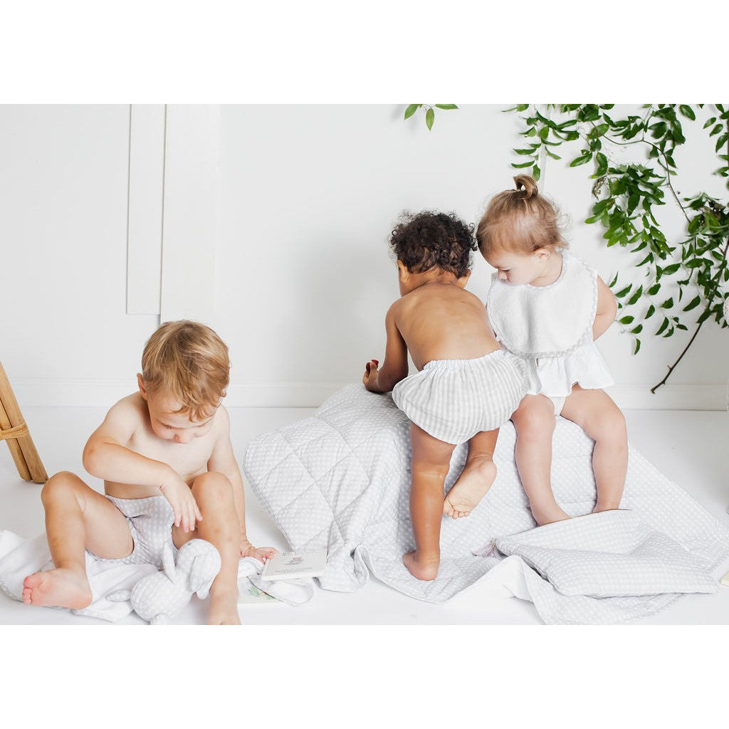 Newborn bib | grey gingham - NEWBORN - 12 MONTHS is backordered and will ship as soon as it is back in stock.