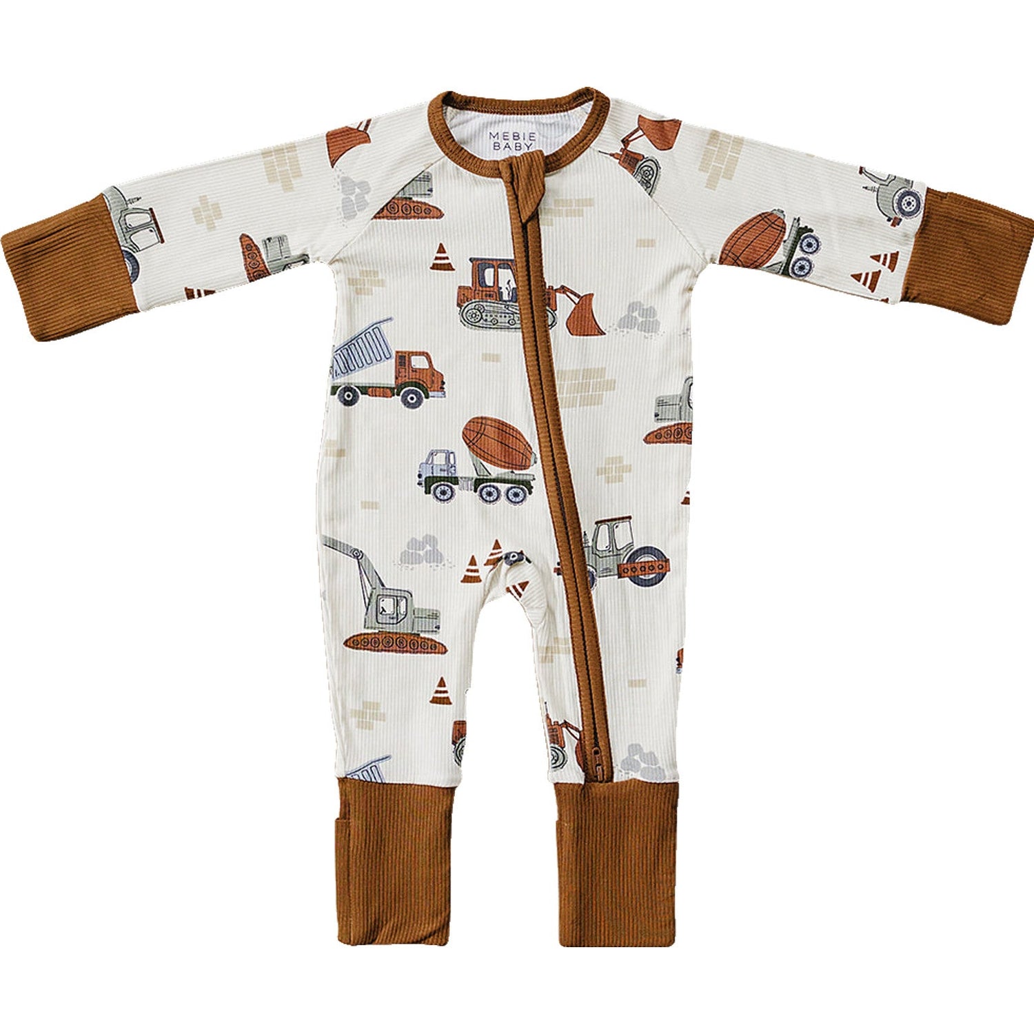Construction Trucks Ribbed Bamboo Zipper - HoneyBug