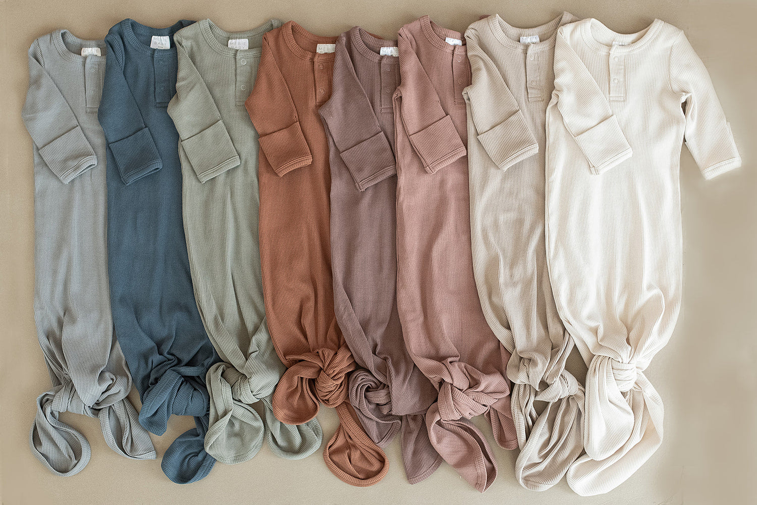 Navy Organic Cotton Ribbed Knot Gown is backordered and will ship as soon as it is back in stock.