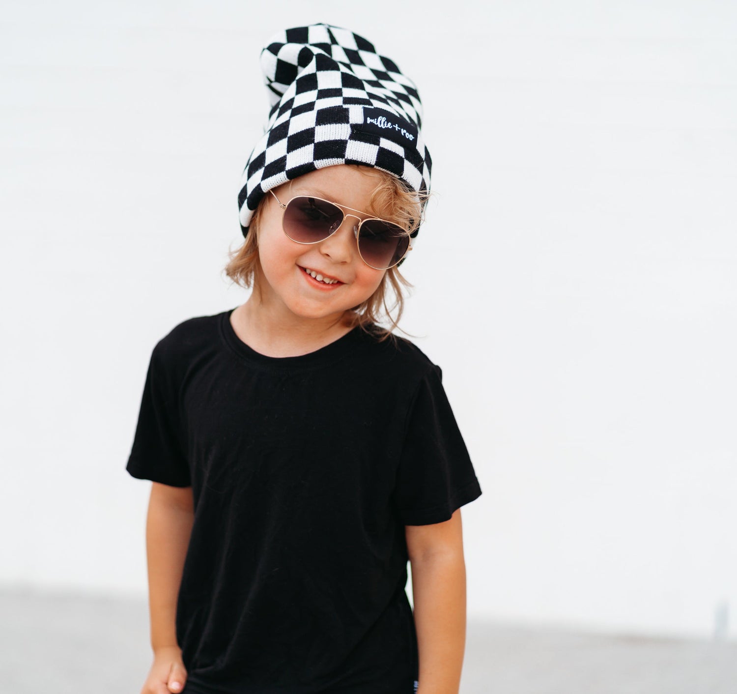 BAMBOO CUFF BEANIE- B+W Check - S (nb/infant) is backordered and will ship as soon as it is back in stock.