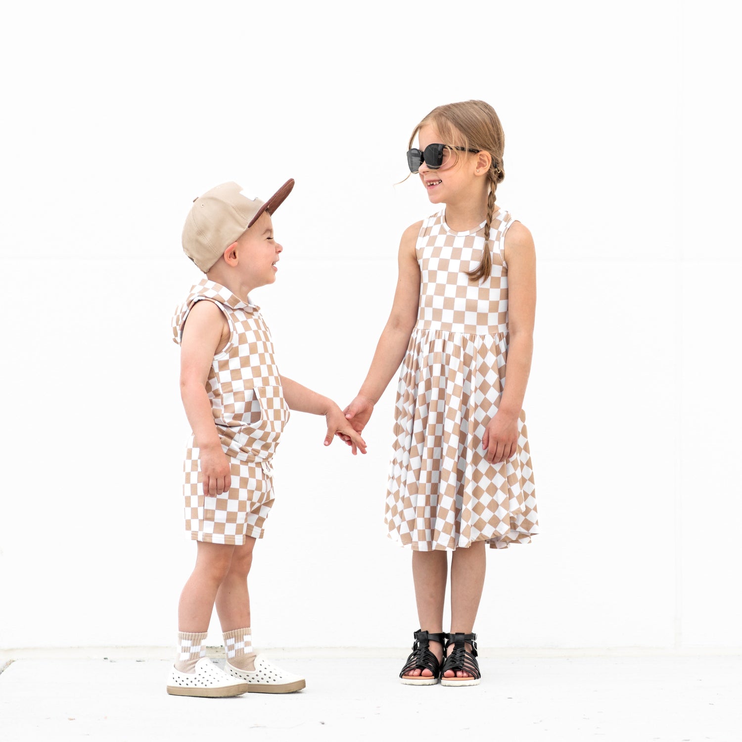 BAMBOO HOODIE TANK- Tan Check - HoneyBug