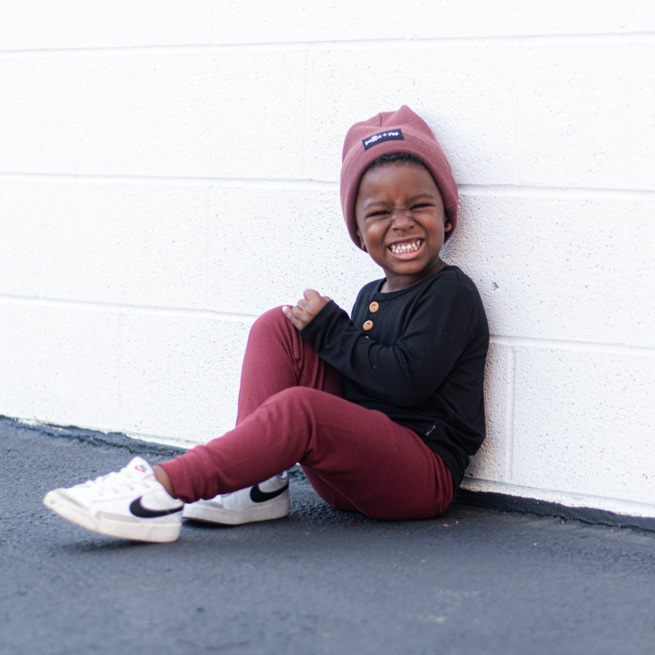 Millie+Roo started in 2014 with a sewing machine, fabric, and a kitchen table. Founder Amber created the "bibdana" for her son Logan, which quickly gained attention on Instagram as “mama sew happy.” This sparked a journey of late nights and hard work, leading to the creation of millie+roo. Today, the brand offers "unbasic basics"—practical yet stylish essentials crafted with love and creativity for everyday family life.