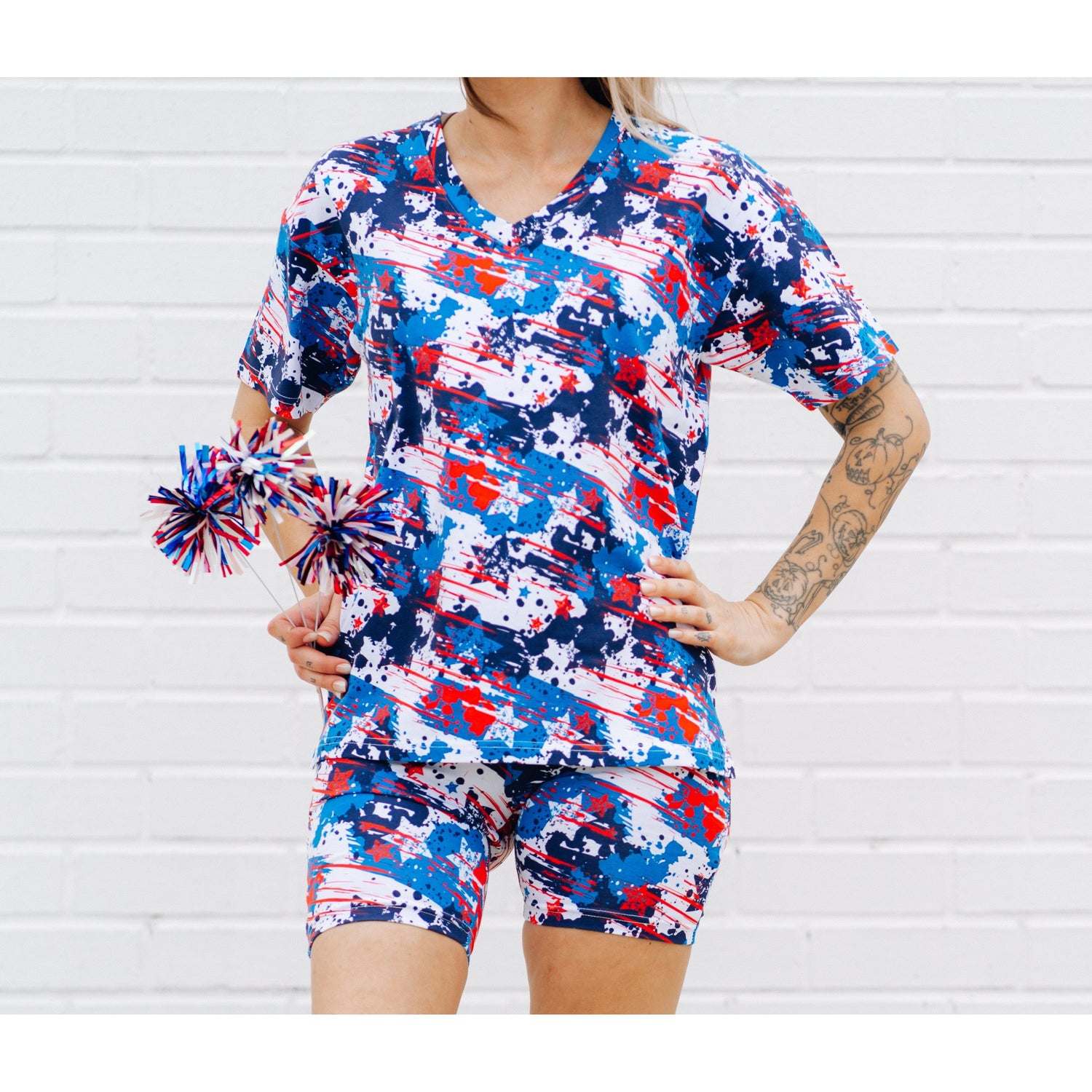 Elevate your summer style with our Patriotic Women's Biker Sets, crafted from a blend of breathable, silky smooth 95% Cotton and 5% Spandex. Designed for versatility, these sets are perfect not only for the 4th of July but for frequent summer wear as well. Whether you wear them together or mix and match with your favorite pieces, these sets offer endless styling options.
