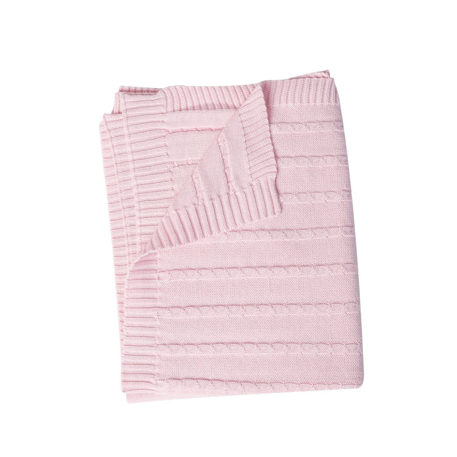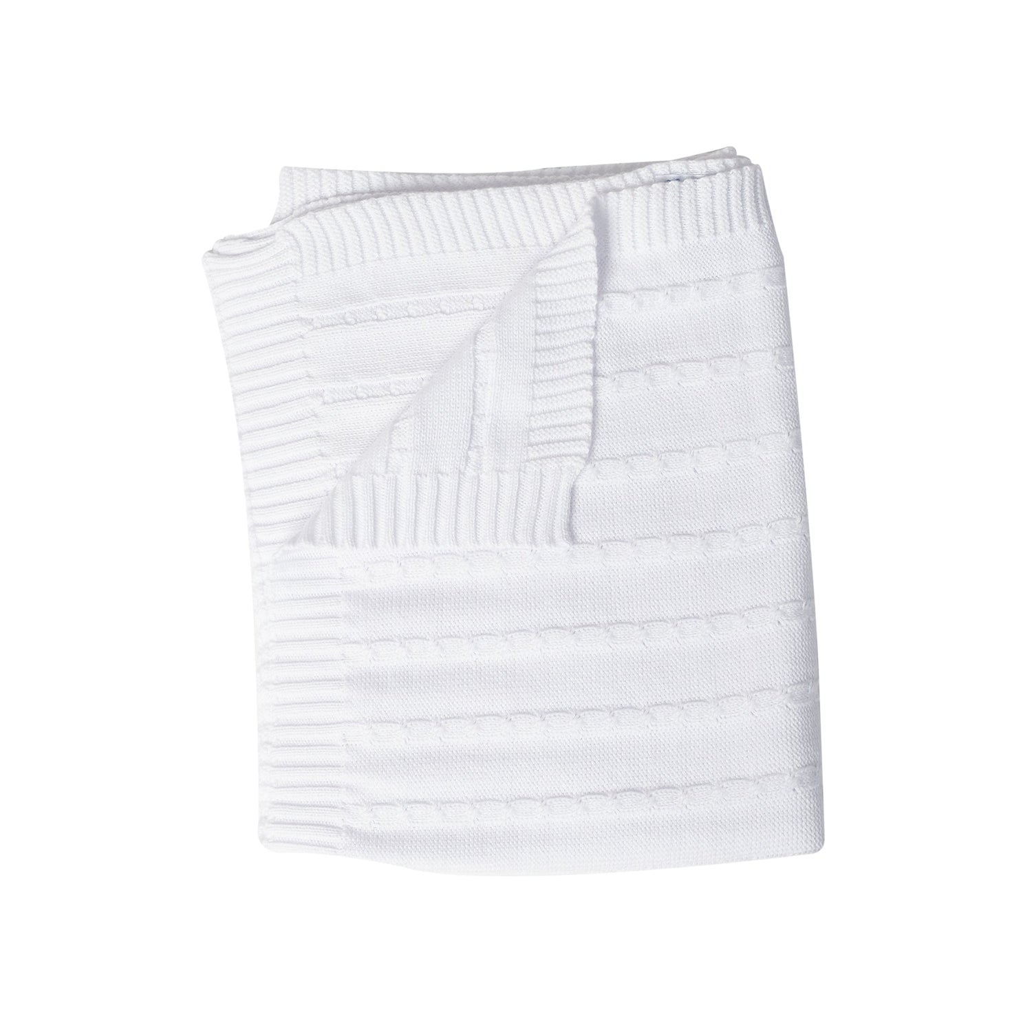Cable Knit Blankets to wrap your baby in soft love. Made of 100% pima cotton, this blanket will keep your baby sleeping comfy and warm at night. The blanket is available in three colors: blue, pink, and white, with a minimal and elegant knit pattern.