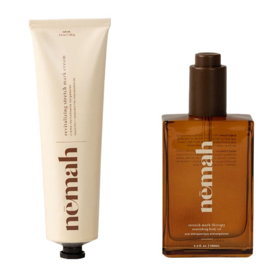 The ultimate bump care routine, designed to prevent & reduce the appearance of Stretch Marks through every trimester. The perfect pregnancy belly duo.