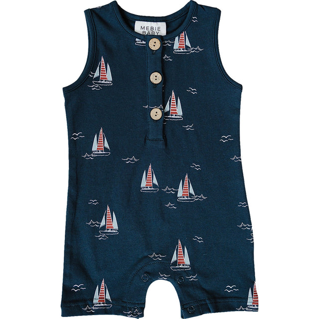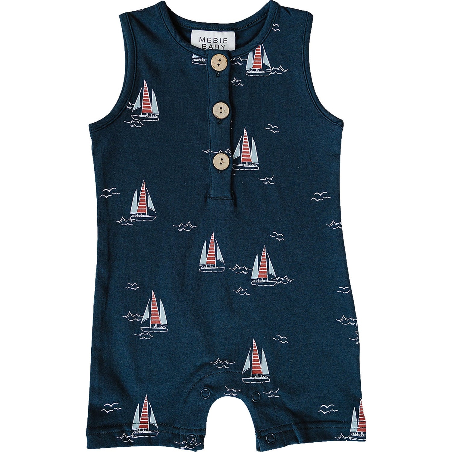 Ahoy, little sailors! This sailboat print romper is perfect for your little one’s next sunny day adventure. With a playful pattern of sailboats drifting across the fabric, it’s the perfect mix of comfort and style. Made from soft cotton and spandex, this romper is perfect for everything from beach days to picnics in the park. The lightweight, breathable fabric ensures they stay comfortable while looking super cute in this neutral colored design. They have wood buttons on the front that add such a cute detail. We also added snaps on the bottom for easy diaper changes!