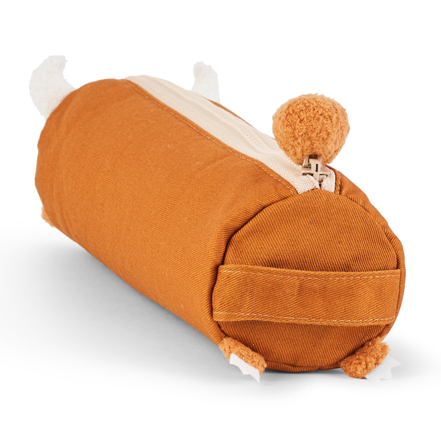 Functional and adorable. This fun Ricemon pencil case loves to chill out on desks, close to you. This Ricemon pencil case has a soft brown exterior and a waterproof lining to prevent any ink leakage. With a cute embroidered face, tiny horns and fluffy tail toggle, it is roomy enough to store all your writing instruments inside. Our pencil cases come with a handle attachment on the other end for you to carry with you wherever you go.