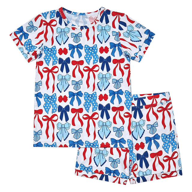 Celebrate in style with the Bamboo Shorts Set | Red-White & Bows!