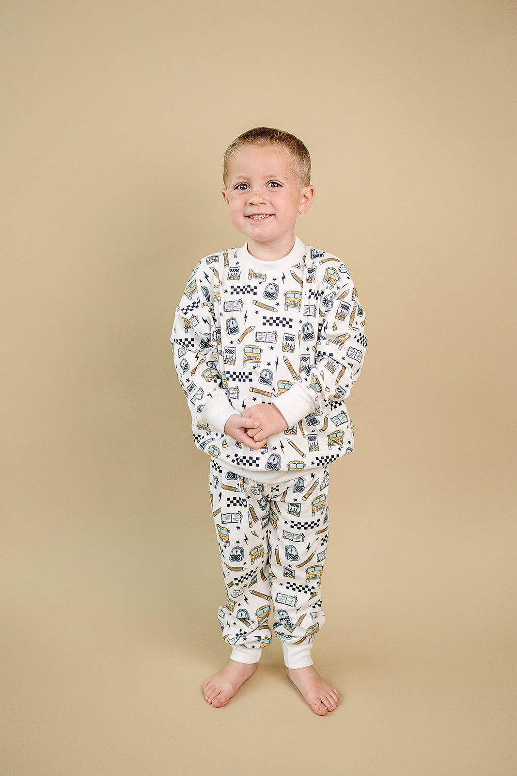 Notebooks, pencils, lightning bolts, and school buses. The Jogger Set Back 2 Cool brings all the classroom energy in one bold, comfy set. Perfect for first day pics, hallway walks, and snack-time chill.