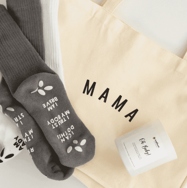 Our Third Trimester Bundle is the perfect gift for a loved one nearing the end of pregnancy and preparing for labor and delivery. Each item shows your support for her journey ahead while also being useful in her upcoming experience. She can use the Mama Canvas Tote Bag as a hospital bag to carry her essentials, and pop our Birthing Affirmation Hospital Socks inside. These are helpful during laboring as they provide stability with the grips on the soles, which also double as birthing affirmations. The Oh Baby! Pregnancy Candle is a sweet and soothing touch with a message that conveys your Congratulations and love!