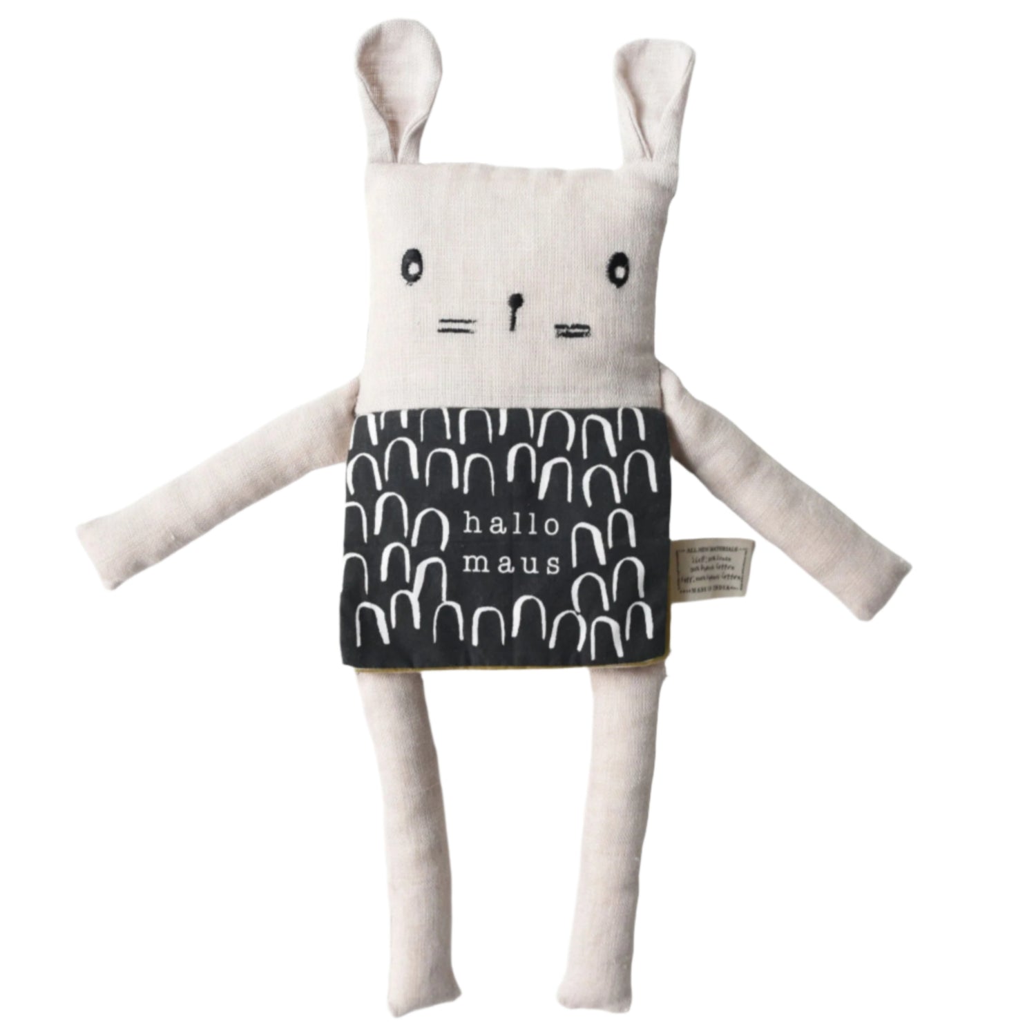 Flip through Mouse's day (in German), from greetings, to lunch, all the way to bedtime with this lovable friend who will stimulate your child's curiosity while following the rhythm and comfort of a daily routine. This clever toy is part cuddle buddy and part flip book with heartwarming faces designed to mirror a toddler's most common feelings and experiences to help them develop their emotional intelligence. Made in India using certified organic fabrics and ethical practices, and arrives in a drawstring linen gift bag/storage bag.