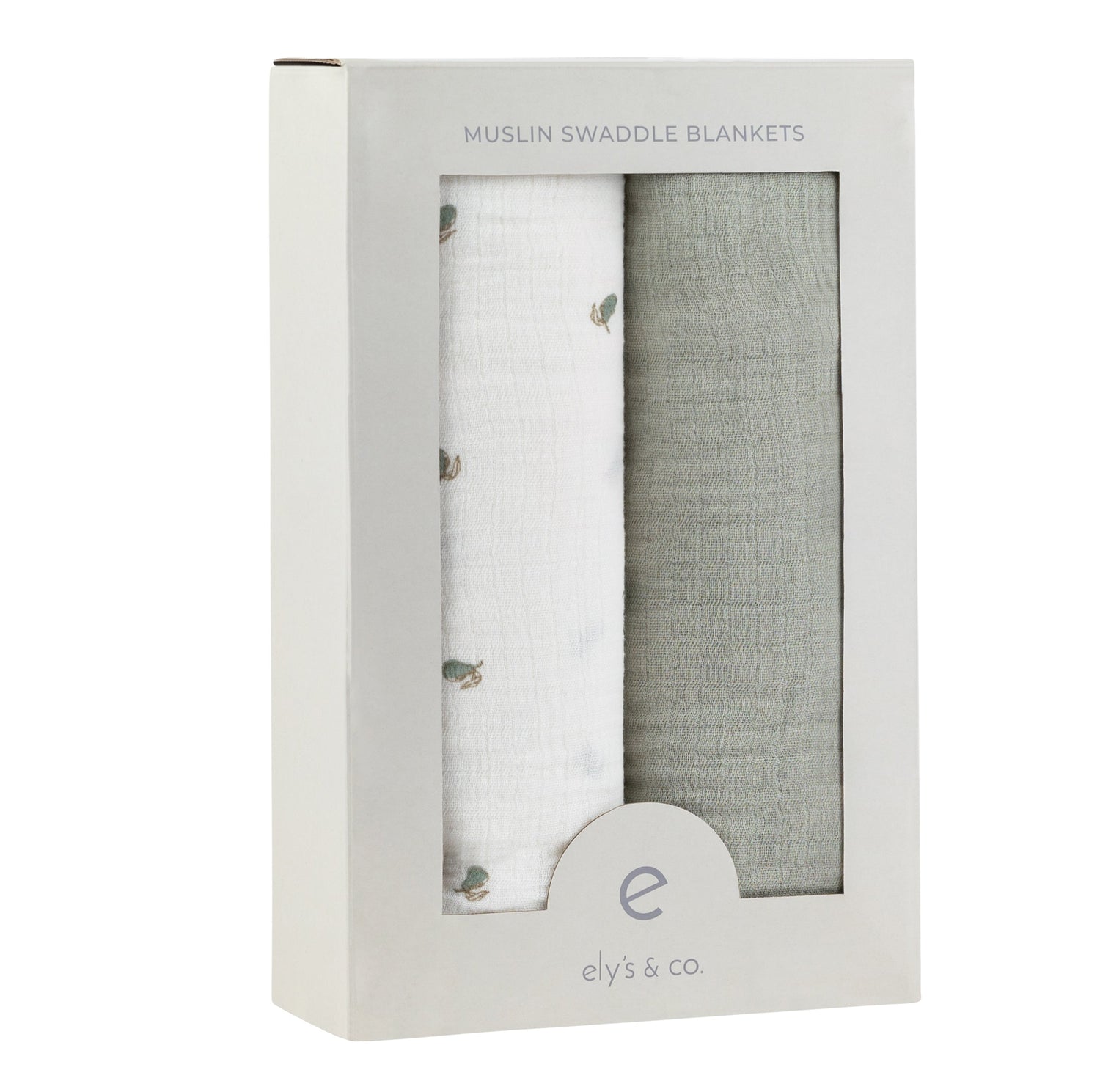 2 Pack Cotton Muslin Swaddle Blanket - Sage Pear & Solid Sage