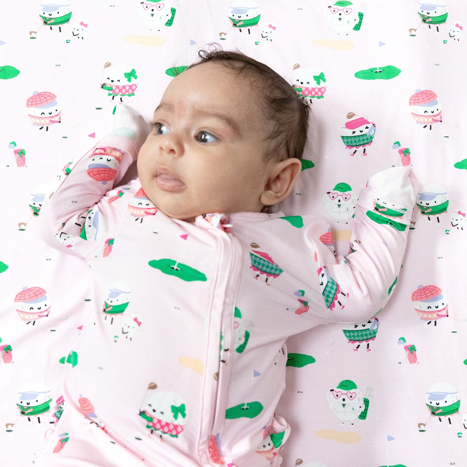 2 Way Zipper Ruffle Back Footie - Golf Pros - Pink