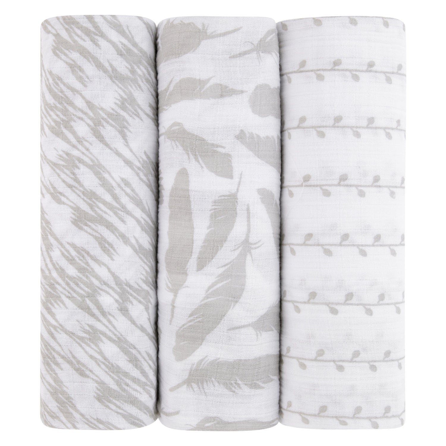 • Set includes: 3 pre-washed 47" x 47" (120cm x 120cm) 100% cotton muslin swaddles