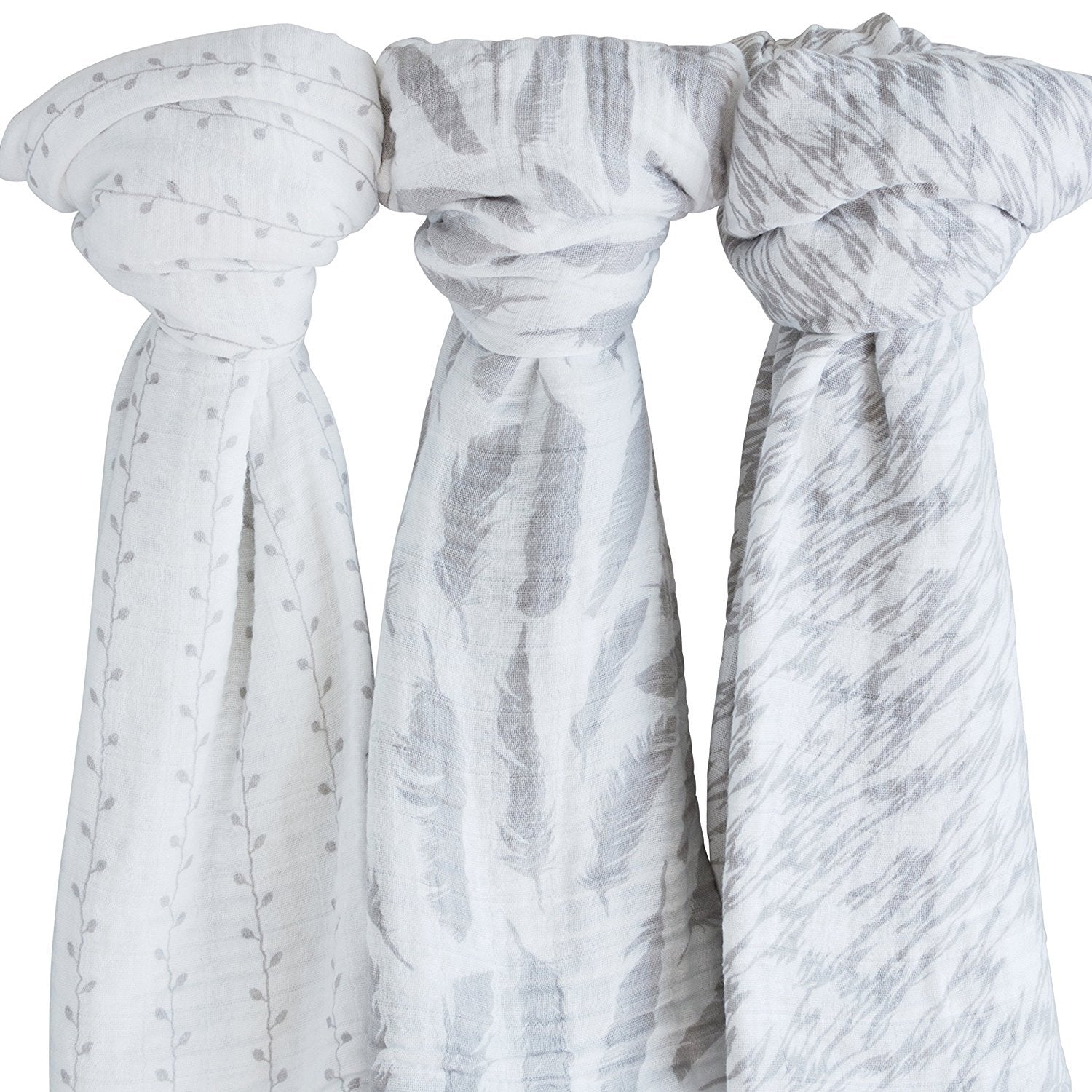 3 Pack Cotton Muslin Swaddle Blanket - Classic Grey