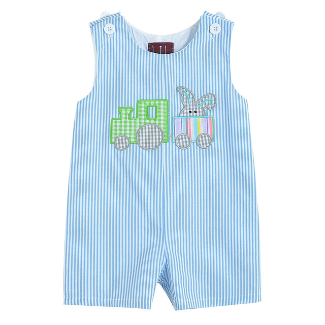 Blue Striped Bunny Train Shortalls - 3T is backordered and will ship as soon as it is back in stock.