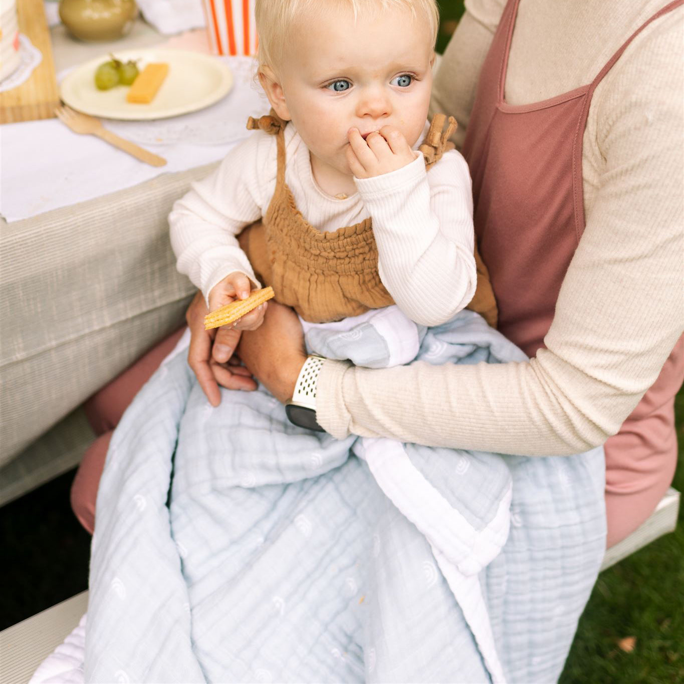 Cotton Muslin Baby Quilt - Blue Rainbow