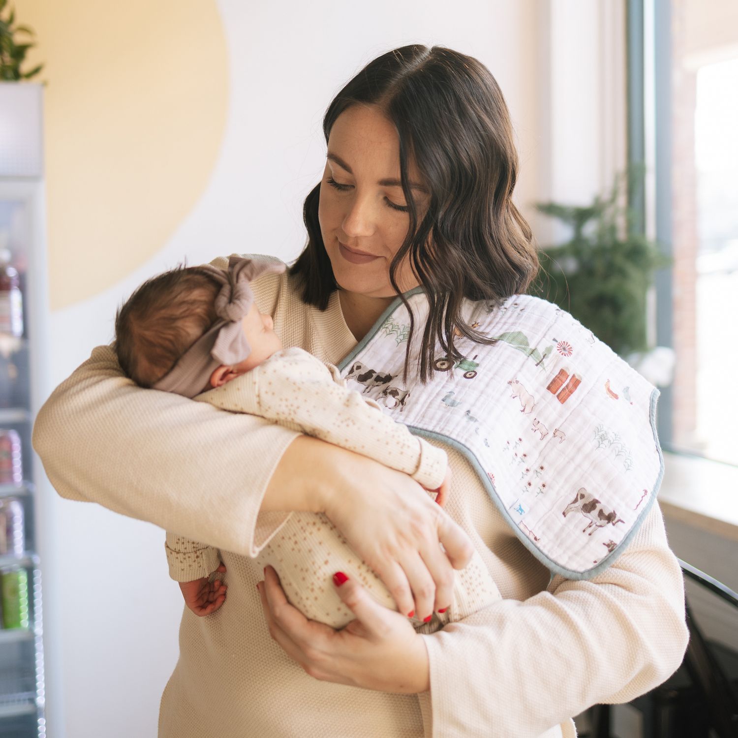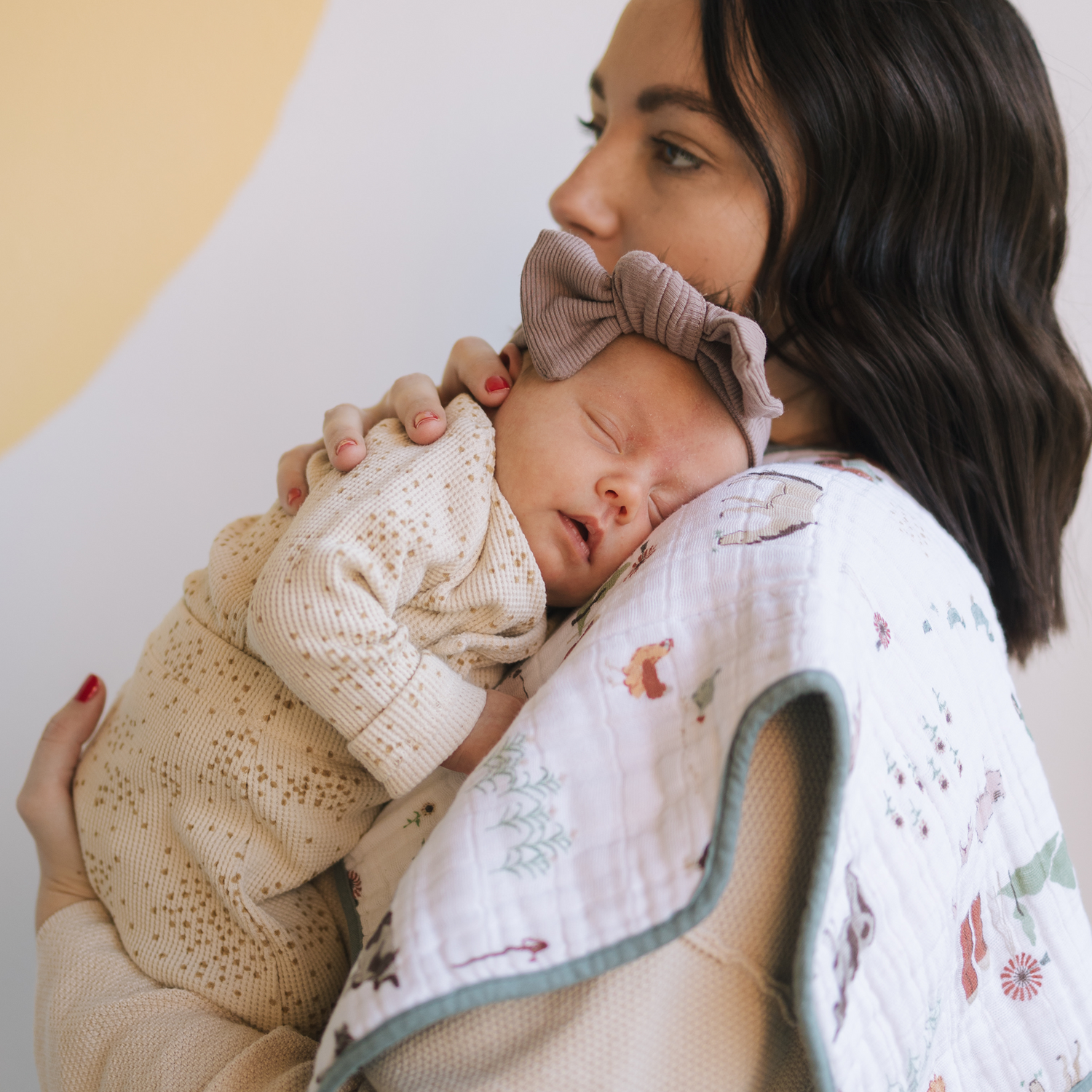 There's no use crying over spilled milk. With 4 absorbent layers of cotton muslin and an innovative shape, our burp cloth keeps you clean and dry while baby's snuggled tight.