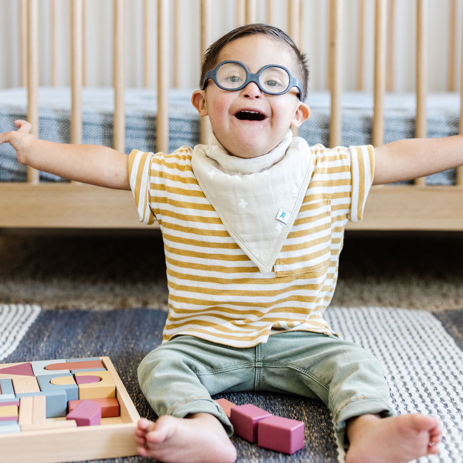 Cotton Muslin + Fleece Bandana Bib 4 Pack - Taupe Cross is backordered and will ship as soon as it is back in stock.