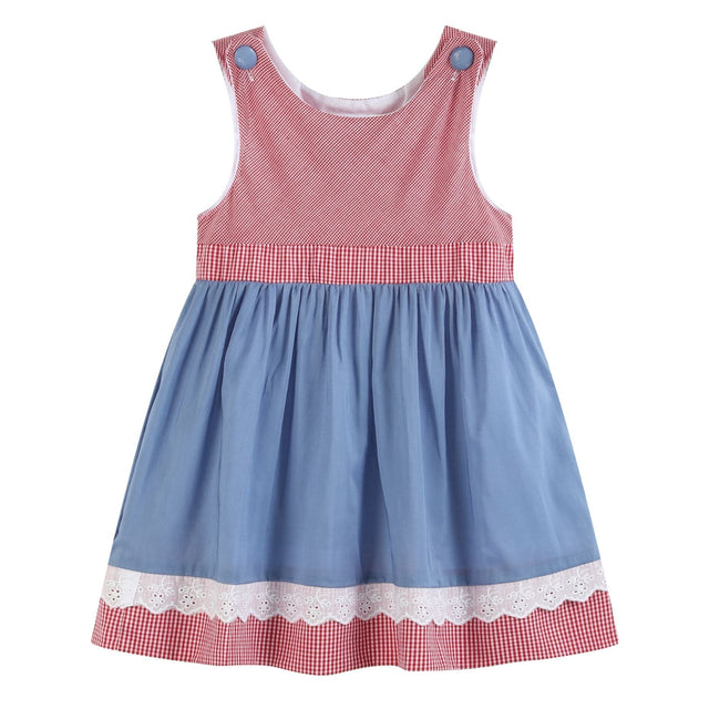 This A-Line Denim Look and Red Gingham Dress is perfect for any little girl! With delicate lace trim and a flowy fit that swishes and swirls, it's sure to become her go-to dress. Perfect for the playground or a day out, this stylish ensemble will make her feel like the cutest girl around.