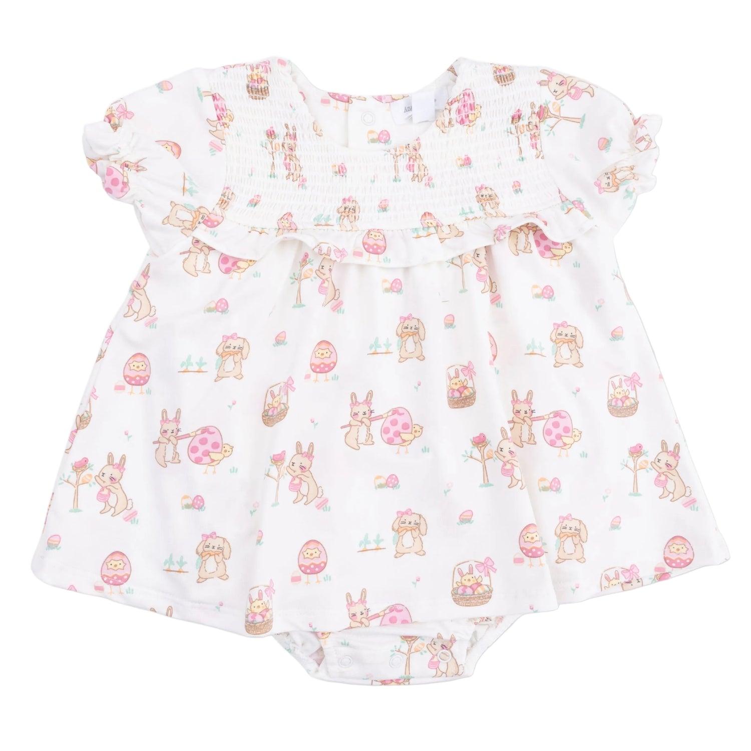 Easter Egg Hunt Pink - Smocked Ruffle Bubble with Skirt