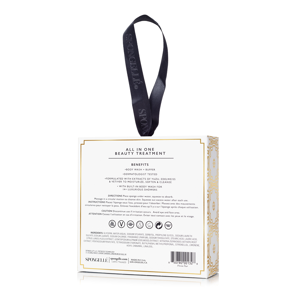 Nestle into an unforgettably refreshing cleansing experience with our perfectly wrapped boxed collection. Unleash Spongellé’s creamy fragrance by placing your body wash-infused buffer under running water to reveal an airy, cloud-like hybrid of exfoliating massage and silky aromatic cleansing. Patented technology ensures a minimum of 14+ washes.