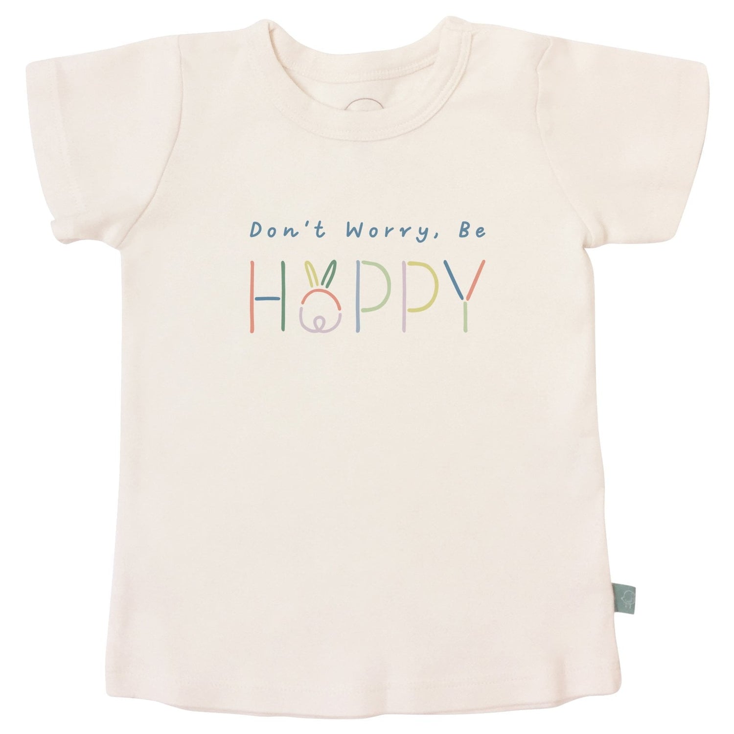 Don't Worry Be Hoppy! Your toddler will look great in this festive tee featuring a cute little bunny bum that will put everyone in a "hoppy" mood. Made of buttery soft organic cotton, this tee makes a great Easter gift too!