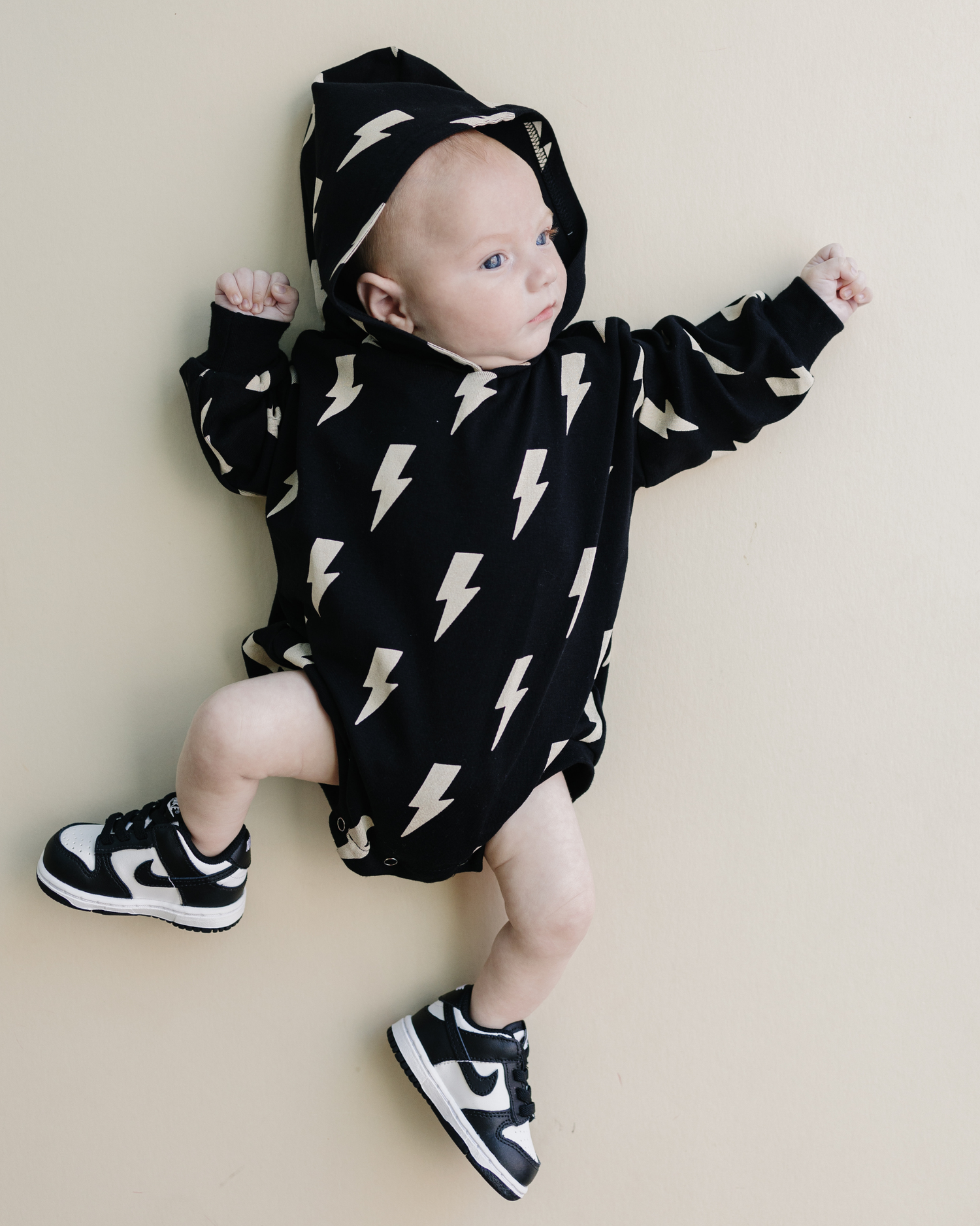 Hooded Bubble Romper | Black Bolts