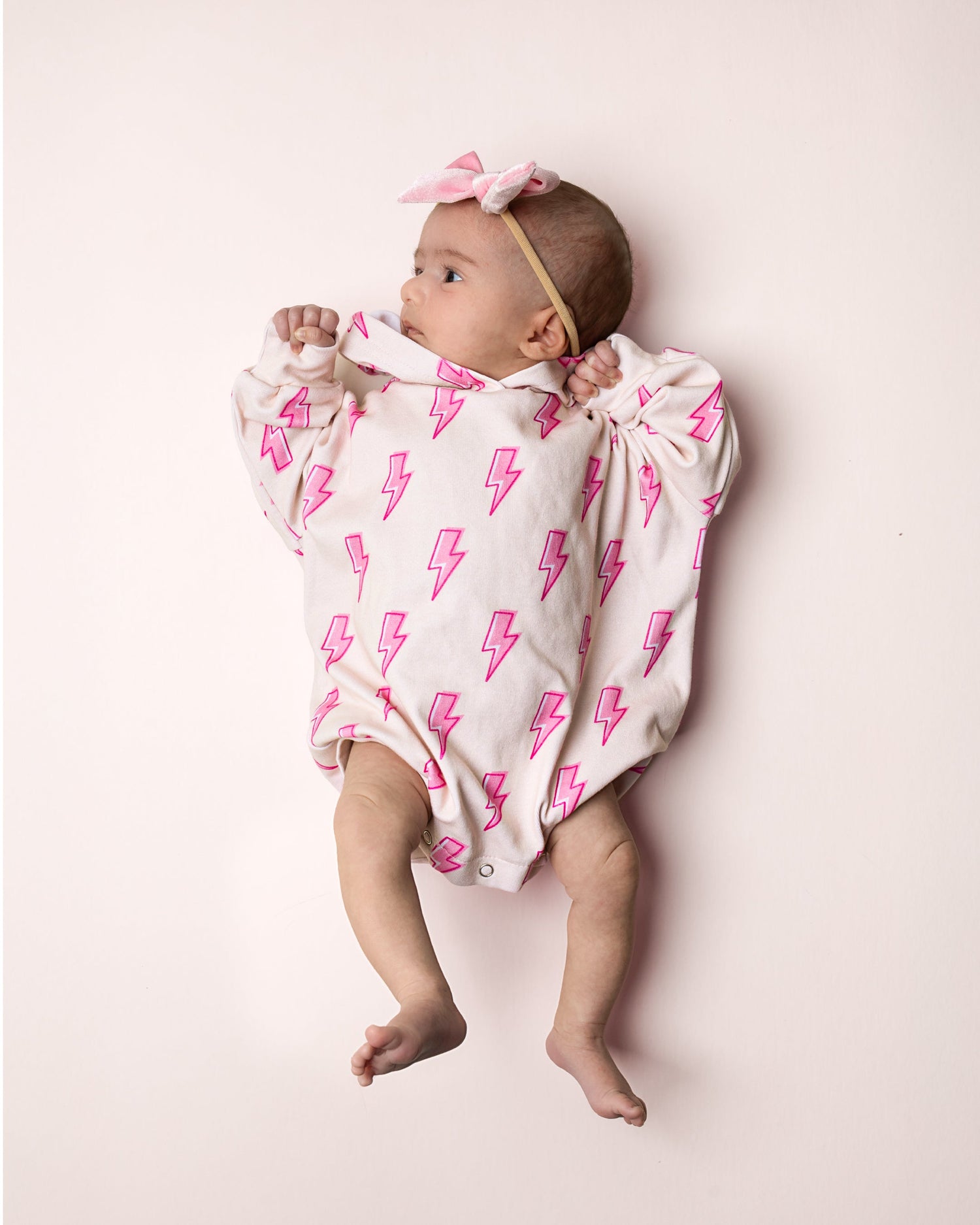 Hooded Bubble Romper | Pink Bolts - 18-24M is backordered and will ship as soon as it is back in stock.