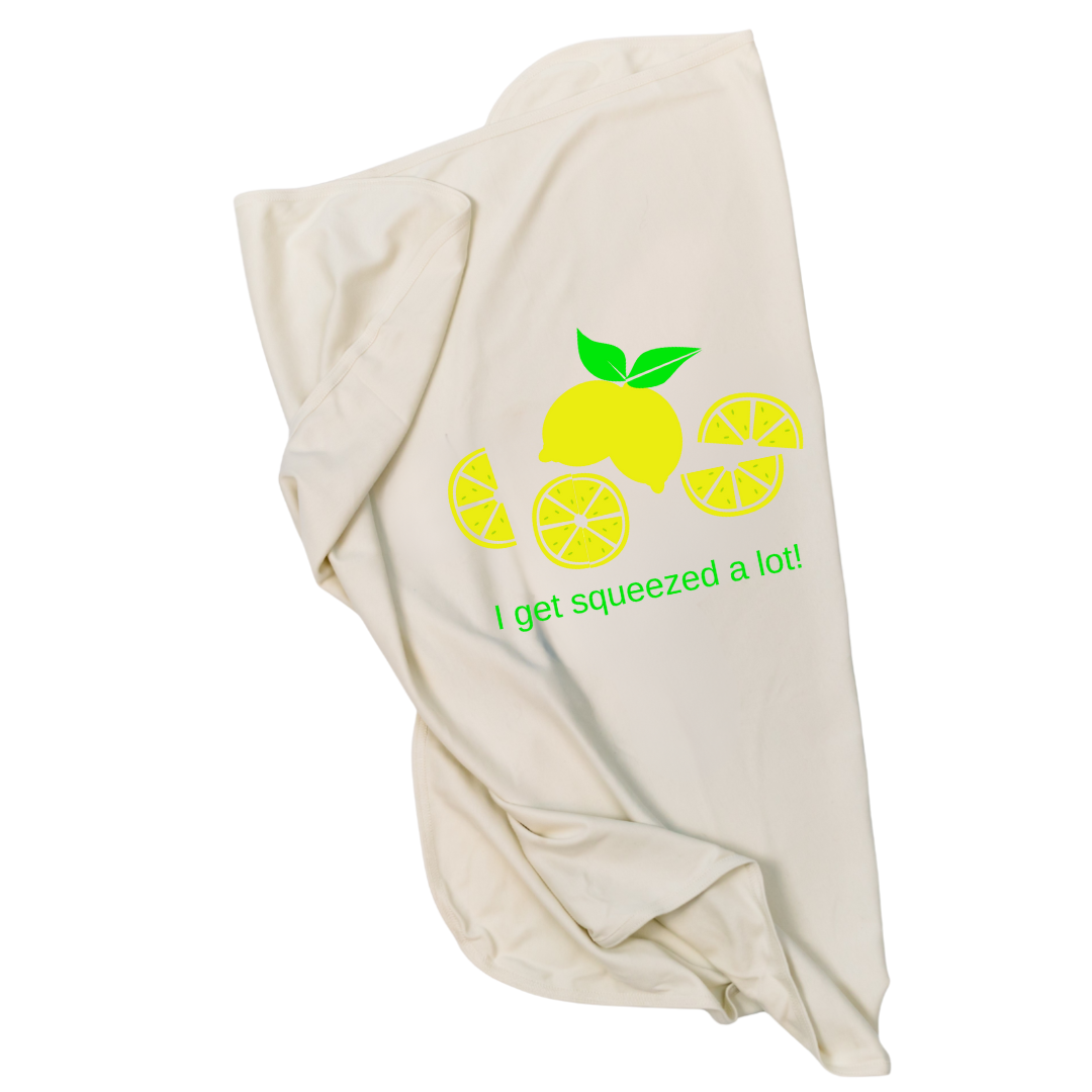 The Lemon I Get Squeezed A Lot Blanket is a versatile baby accessory that can be used as a picnic blanket, stroller cover, swaddle, or simply as a soft cotton throw. Made from 100% organic cotton, our blanket is gentle on your skin and perfect for snuggling up with baby on the couch or taking on outdoor adventures together!