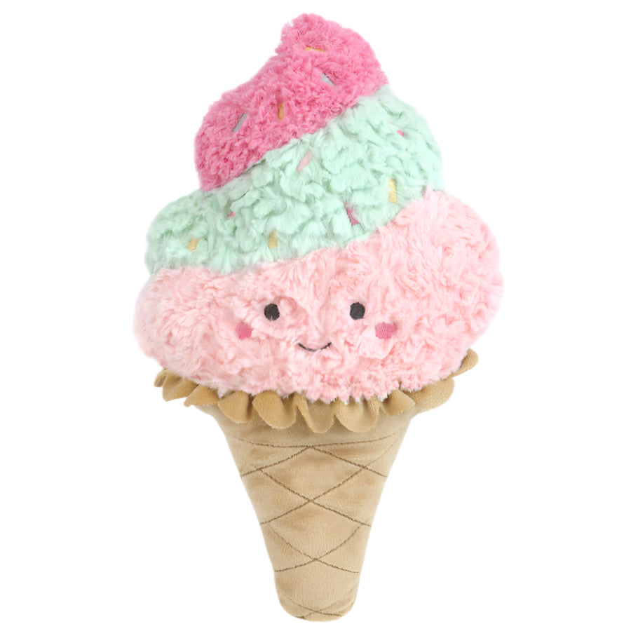 Treat yourself to a scoop of charm with our Ice Cream Swirl Accent Pillow! This plush delight features three dreamy scoops in soft strawberry pink, mint green, and cherry all topped off with an adorable embroidered smiley face and rosy cheeks. The cozy velour cone adds a snug, huggable feel that's perfect for cuddling. Whether it's a sweet addition to your decor or a playful companion for imaginative adventures, this Ice Cream Decor Pillow brings a sprinkle of joy to any space.