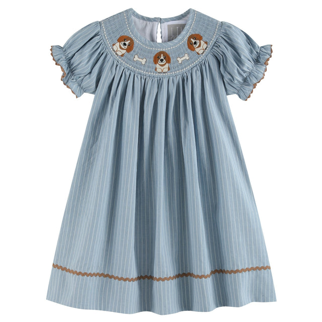 Light Blue Puppy Smocked Bishop Dress