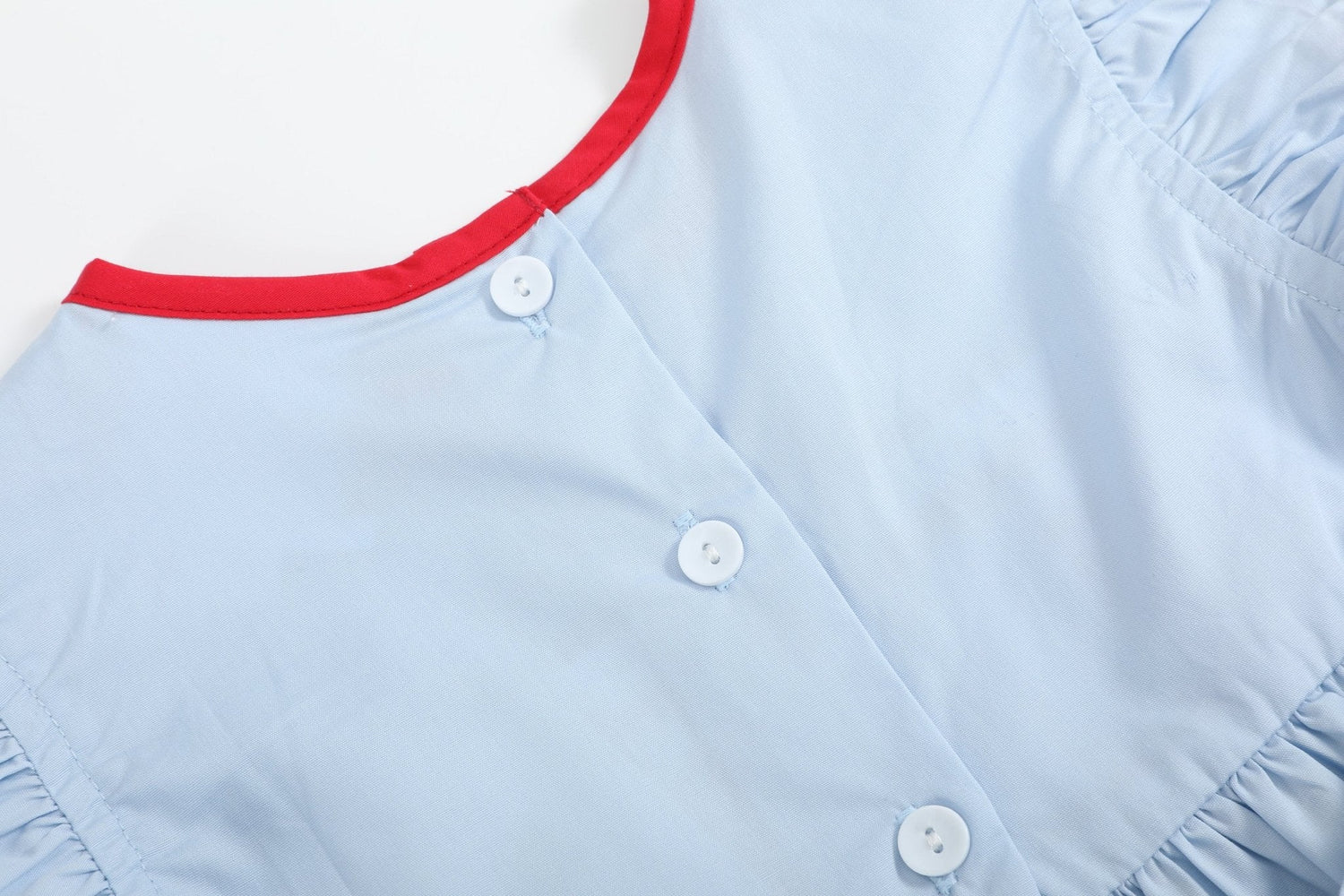 Flutter sleeves add a soft, airy feel, while red and white rickrack details bring in the perfect pop of color and detail.