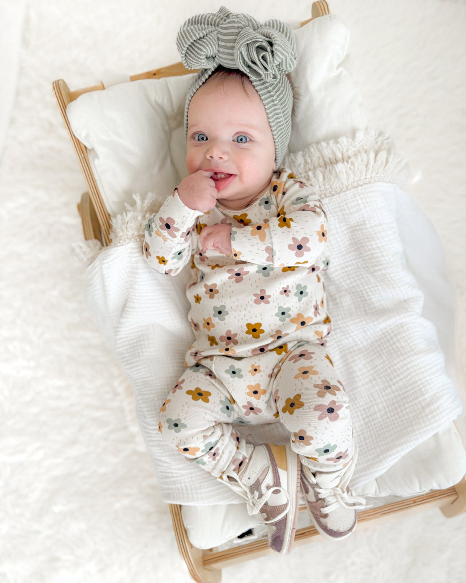 After our son was born, we couldn’t find baby clothes that fit the modern + minimalistic style we wanted – items that were quality, looked cute, but were also simple. So, we decided to create our own! What started as just handmade beanies that everyone seemed to love, has grown into an online store now stocking over 400 adorable outfits and cute accessories for your newborns, babies, and toddlers up to size 5T.
