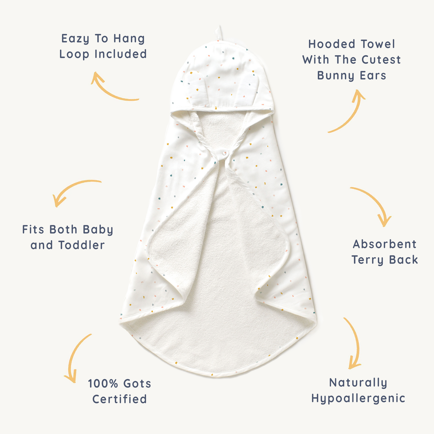 Organic Baby Hooded Towel - Dotty