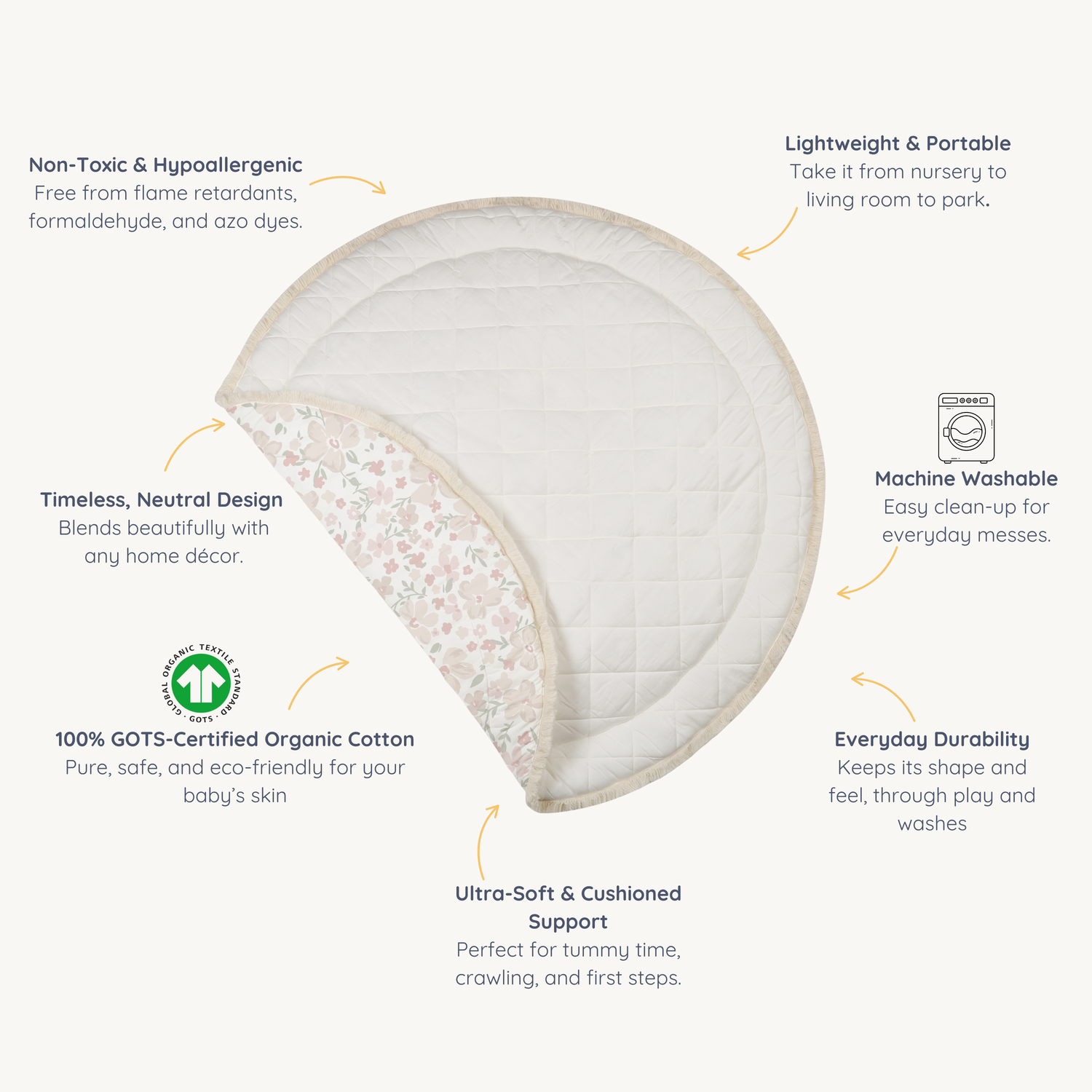 Organic Cotton Quilted Play Mat - Blossom is backordered and will ship as soon as it is back in stock.