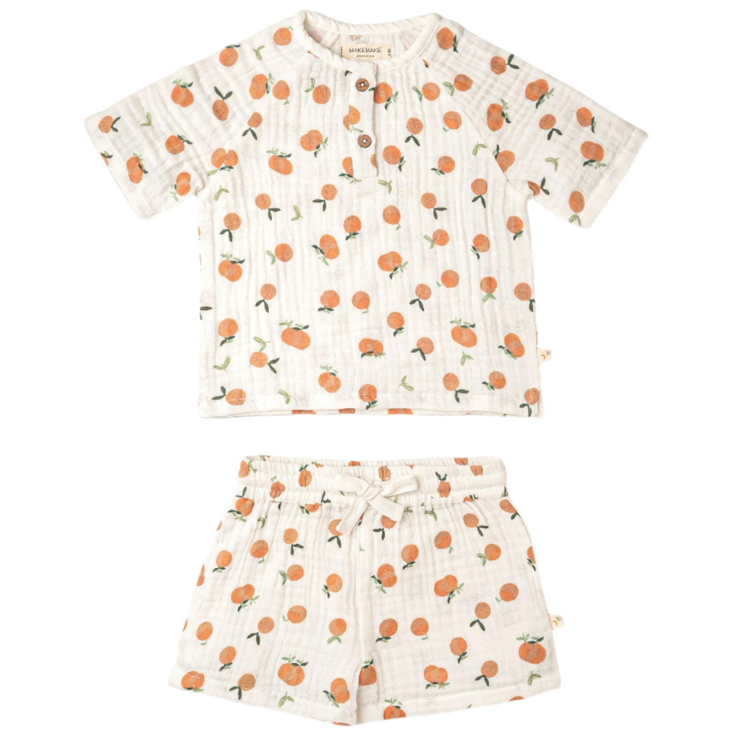 Organic Raglan Shirt & Shorts Set - Mandarin