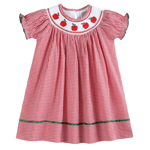 Red Gingham Apple Smocked Bishop Dress