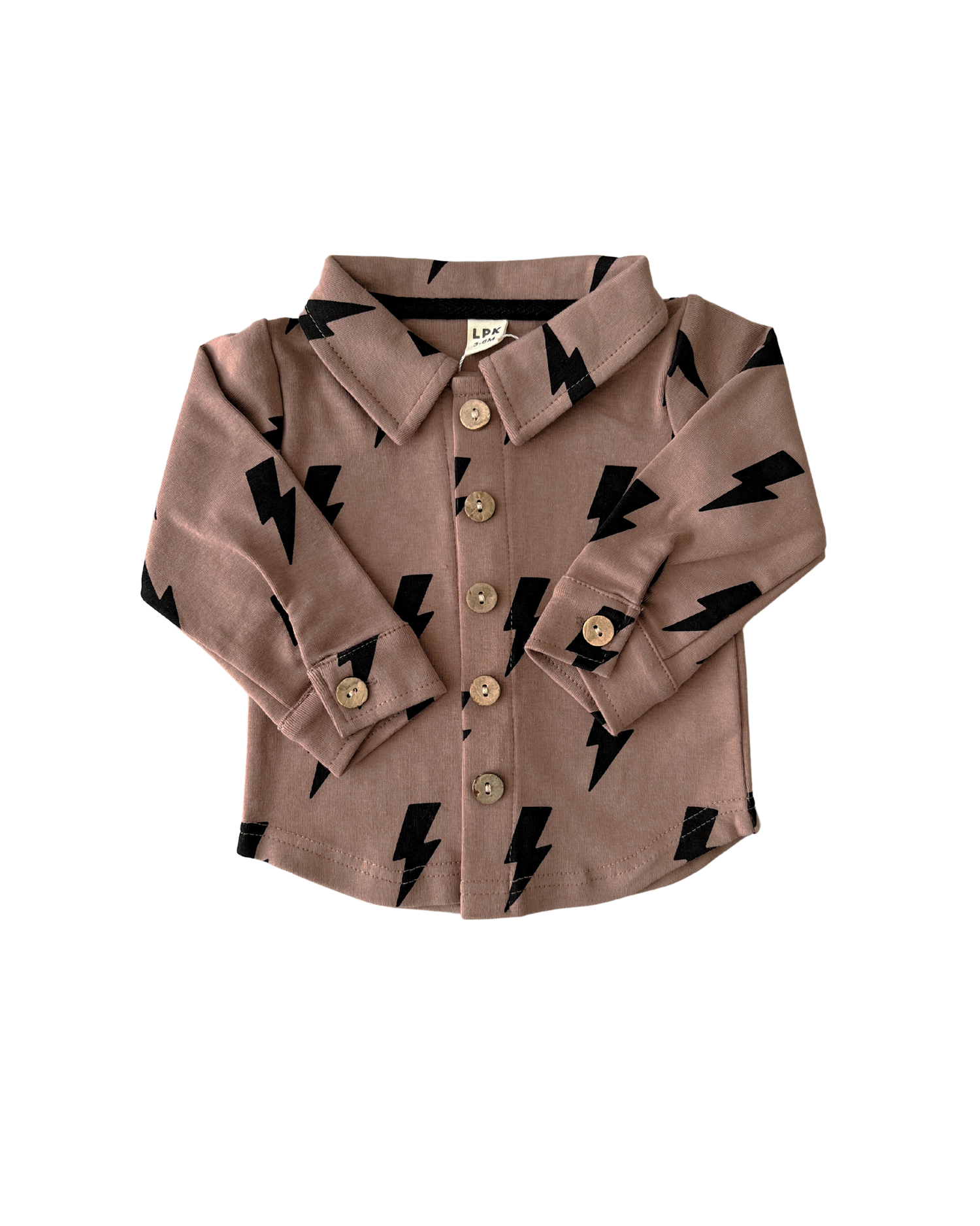 Shacket | Mocha Bolts - 0-3M is backordered and will ship as soon as it is back in stock.