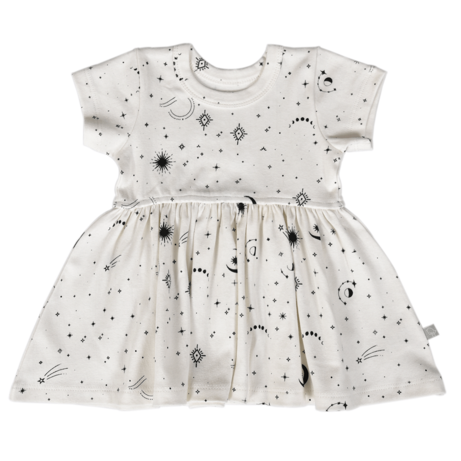 Looking for a magical organic baby dress or organic toddler twirl dress? This celestial favorite is perfect for sunny days, starry nights, and everything in between.