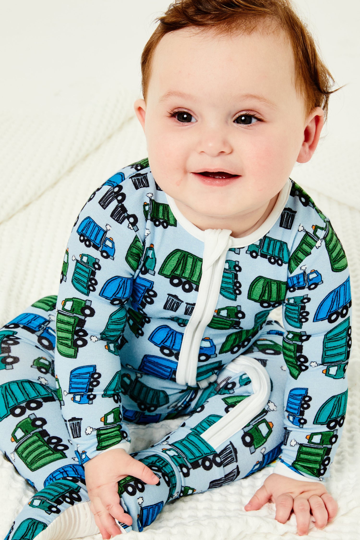 Soft & Stretchy Zipper Footie - Garbage Trucks